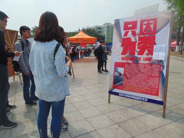 团委学生会牵头、王永成的班级同学配合为其举行“只因为爱”现场募捐活动,正是为积大家之爱助王永成同学渡过难关而举办。