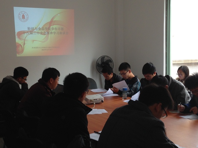 学生干部学习十八届三中全会精神座谈会在四川大学江安校区14舍活动室成功举行。参加此次座谈会的有院团委书记、2013级辅导员苏德强老师和2013级部分学生干部。