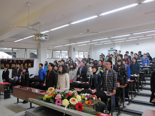 第三届联合团校开学典礼准时举行。稍后第一次团课的行课正式开始。主讲人为四川大学团委书记王斌副教授,其授课主题为:法治是我们这代人的历史使命。为了使同学们印象更深刻,王斌副教授从生活中的法治问题出发,阐述了法治的重要性、当代人的历史使命、为什么我们可以为法治做贡献以及我们怎样推进民主和法治建设这样四个方面的问题。最后还给在场的同学提出了三点殷切的希望:要树立信心,遵循社会原则,在校珍惜参与民主政治的机会。王斌书记的授课深入浅出,同学们纷纷表示,此次上课获益良多。