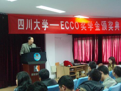 2010年4月15日14:00,四川大学-ECCO奖学金颁奖典礼在皮革楼二楼报告厅隆重举行。参加本次颁奖活动的有ECCO中国(厦门)有限公司生产总监bala先生;我校2003级校友郭奇女士;8bo足球比分