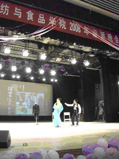 研究生为本次晚会精心准备的话剧《飞来横福》引得观众叫好连连。这体现了研究生同学不仅注重学习、科研,更以饱满的热情积极参加学生活动,丰富了同学的业余文化生活。