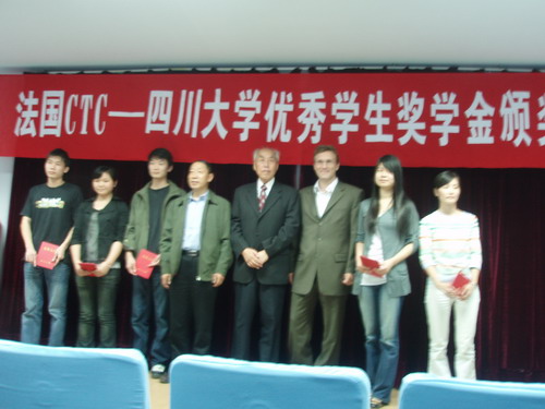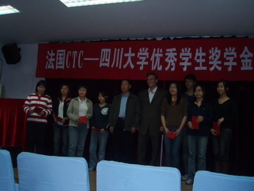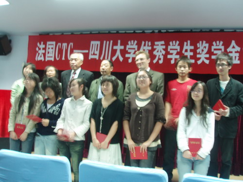设立奖学金表示感谢,对本次获奖同学表示祝贺并提出了殷切的期望。随后,法国CTC公司皮埃尔总经理简要介绍了本公司的情况,并勉励获奖同学再接再厉,争取更好的成绩。颁奖典礼结束后,皮埃尔总经理跟同学进行了交流,对同学所关心的问题进行了详细的讲解。本次优秀学生奖学金共有27名同学获此殊荣。