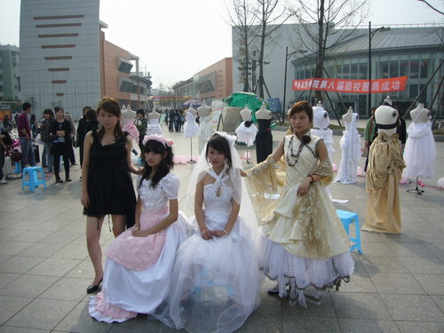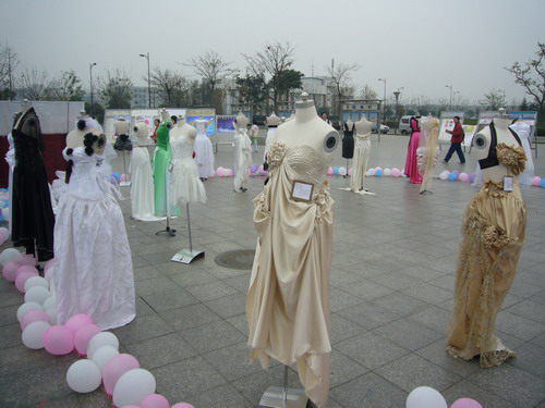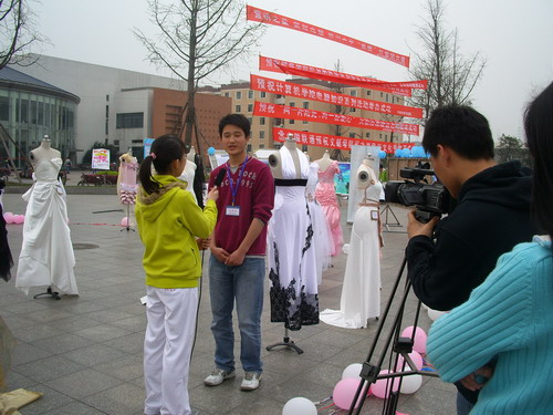 05级服装系主办、院团委宣传部协办的05级服装系学生礼服设计作品展在青春广场隆重举行。本次展览由05级服装设计与工程专业的同学主持,共展示出学生优秀作品三十八款。