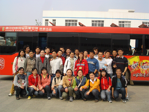 食品科学与工程专业一行60人参观了位于成都市龙泉驿区的白家粉丝厂。本次活动得到了白家粉丝厂的大力支持,派专车将同学们接到了目的地。