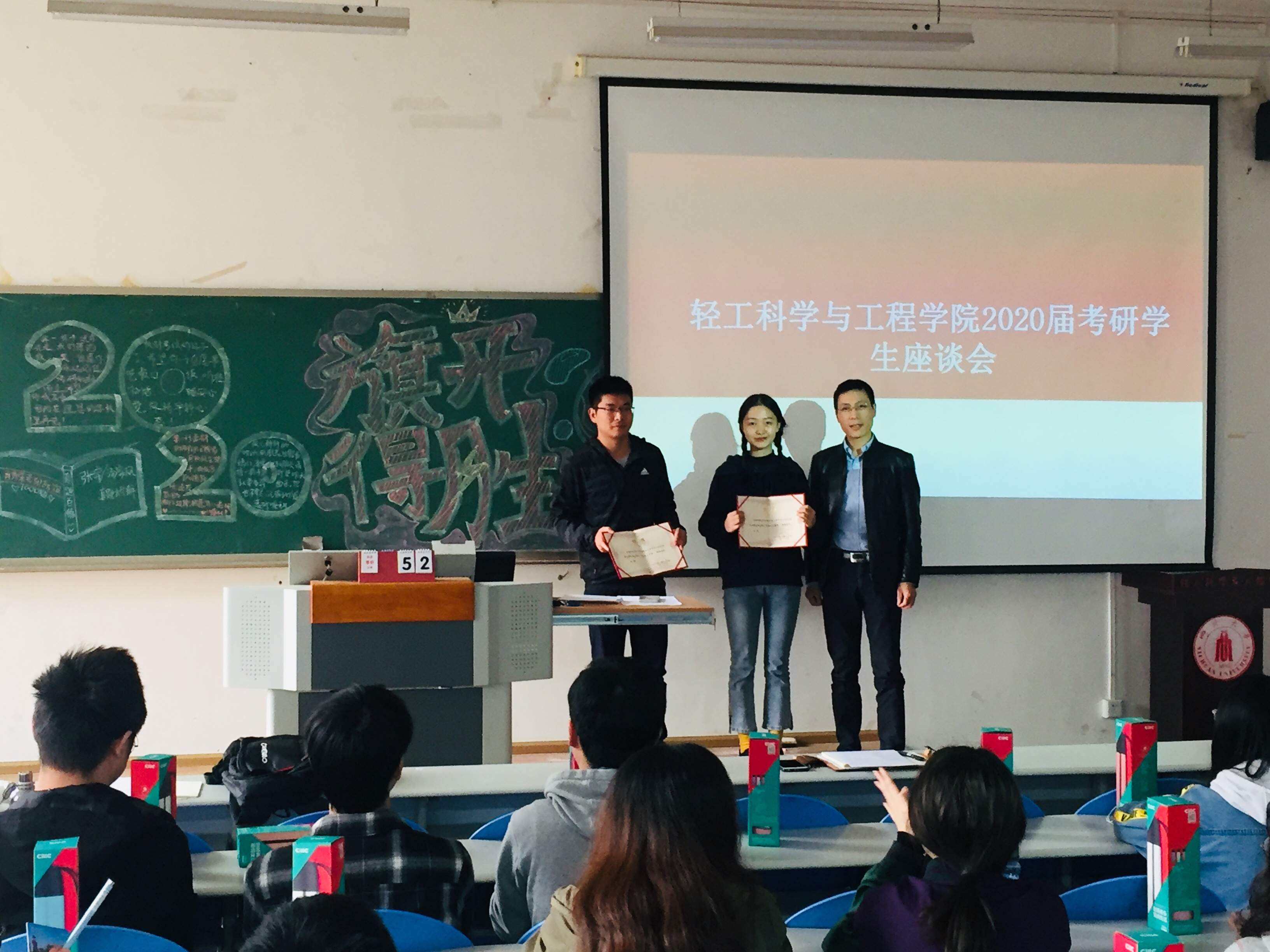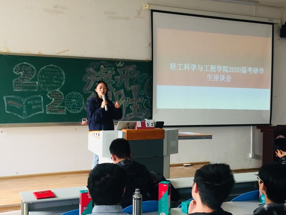 党委副书记冯国涛老师、2019级发酵工程专业硕士研究生任志军同学和2019级农产品加工及贮藏工程专业硕士研究生彭青同学担任主讲嘉宾。交流座谈会由2016级本科生辅导员王舒灏老师主持,2016级本科全体考研学生及部分2017级本科生参加了本次座谈会。