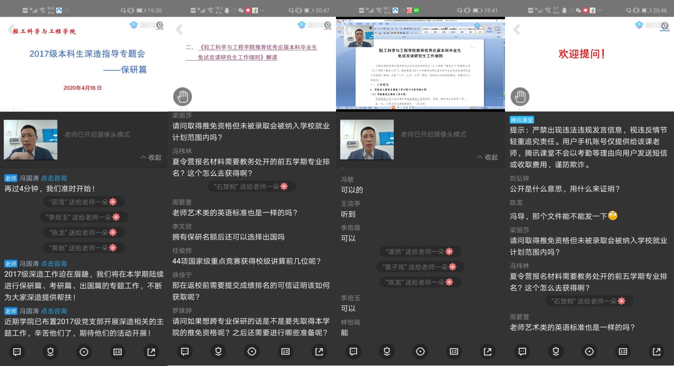 会议最后进行了答疑环节,同学们就跨专业保研、竞赛种类、证明材料获取方式、专利等方面进行提问,老师逐一详细回答。冯老师解读层次清晰,回答问题逻辑严密,解开了同学们心中非常多的疑惑,也让大家对保研有了更加深入的认知。相信在此次会议之后,同学们能够更有针对性地为保研做好准备。