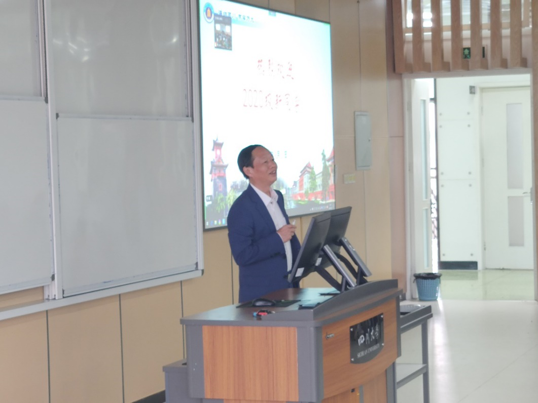 院长何有节教授介绍了四川大学以及学院的学科设置、师资力量、教学改革等概况,鼓励同学们充分利用好学校与学院的资源与平台,为自己的成长成才提供帮助�