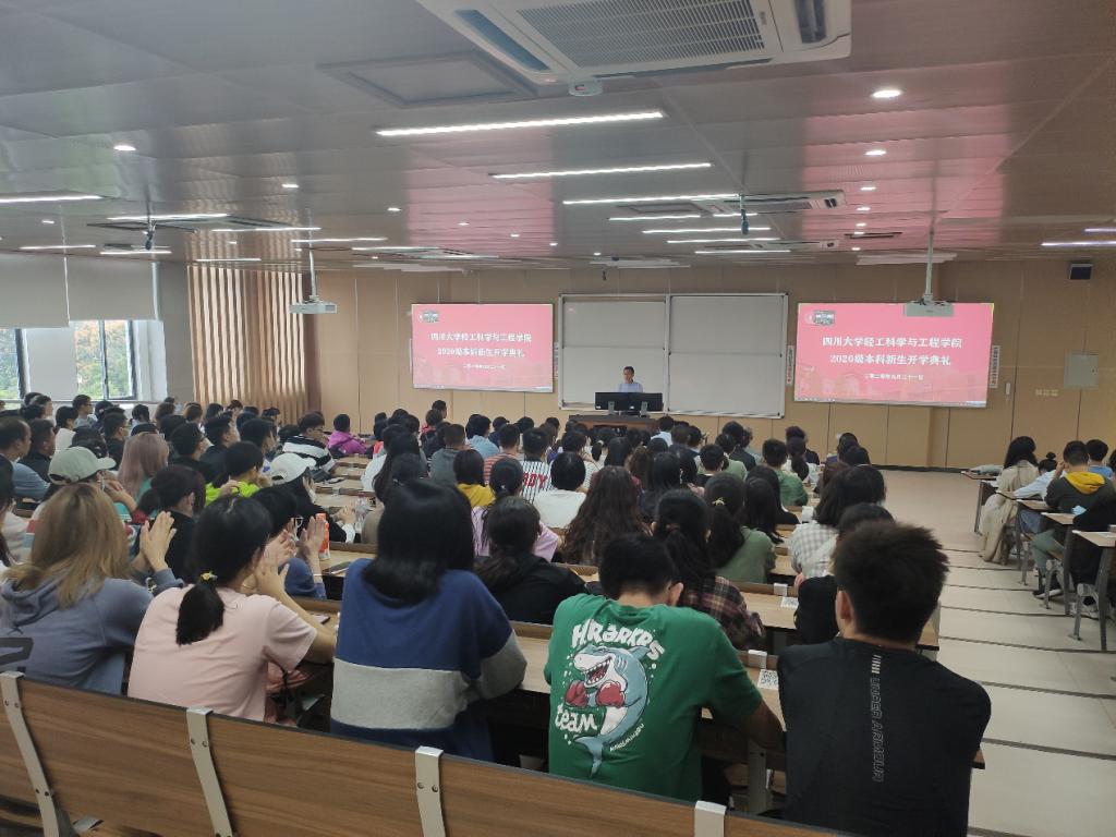 2020�9�21�14:30,轻工科学与工程学院2020级本科生开学典礼在江安校区综C504和综C103教室分别以主会场与分会场方式顺利举行。出席开学典礼的领导和嘉宾有轻工科学与工程学院党委书记刘晓虎副教授、院长何有节教授、副院长何强教授、肖凯副院长、生物质与皮革工程系副系主任程海明教授、纺织与服装工程系副系主任赵武副教授、青年教师代表郭俊凌教授�2020级教导员邱华明老师�2020级辅导员余昕玲老师以及高年级学生代�2017级食品科学与工程专业李静雯同学。开学典礼由学院党委冯国涛副书记主持,学院全�2020级本科新生参加了开学典礼�