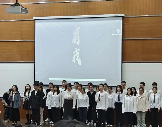 团委学生会组织部成员共同演唱充满青春活力的歌曲《有我》后,正式进入第一次行课环节。