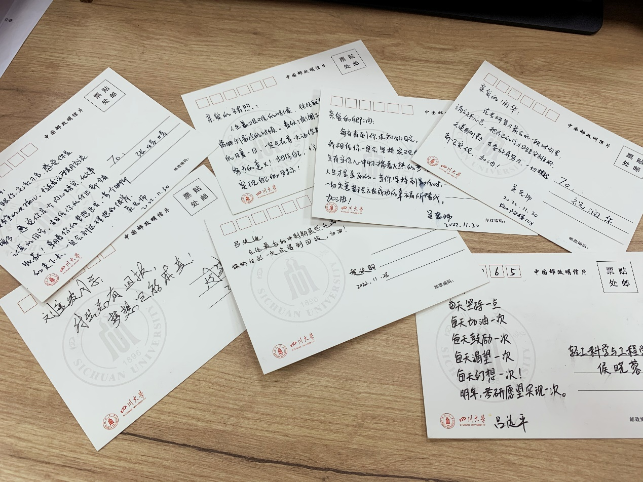宣誓结束后,同学们有序进行第三次模拟考试。考试结束后,贾欣驹老师为同学们发放了学院精心准备的“暖心大礼包”,班主任们也通过明信片的形式为考生们加油打气。接下来,思学中心朋辈导师将联合新东方辅导老师进行评阅和试卷讲解,对于共性问题进行集中解答,对于个性问题进行一对一沟通,指导大家查漏补缺�