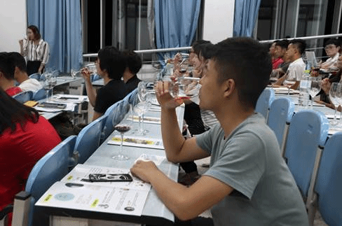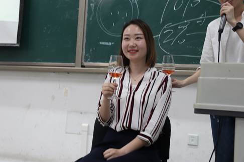 罗爱民老师,酒文化协会全体同学参加了此次活动。首先,罗爱民老师就酒文化做一个分享。讲解酒在身体里的代谢过程,教同学们如何在饮酒时的注意事项,能够更好的享受感受酒的魅力,同学认真聆听,在台下积极回答罗老师所问问题,罗老师讲解酒文化很有激情,同学们都被带动起来现场的气氛越来越活跃起来,同学们都对酒文化都充满了兴趣。在罗老师分享结束,张文宇学姐做一个关于葡萄酒的分享。葡萄酒作为如今聚会等场合不可缺少的酒,其中的礼仪更是重要,现场的工作人员给同学们倒酒,在学姐的讲解下品鉴葡萄酒。首先是怎样拿酒杯,再是喝酒之前先要闻,再分别对桃红葡萄酒、干红葡萄酒的口感和礼仪做介绍,让同学们有一个更好的体验。张文宇学姐,讲述方式幽默风趣,以自己亲身经历讲述,将现场的气氛推向高潮,同学们都拿起酒杯跟着学姐的讲解学习葡萄酒礼仪。