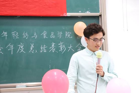 向星烨老师宣读表彰决定后,获奖代表分批次上台领奖。“五四红旗团支部”代表2016级轻化工程第一团支部书记刘德才同学、“优秀共青团干部”代表2017级轻化工程第一团支部书记陈伯文同学、“优秀共青团员”代表2017级食品科学与工程专业祁家宁同学、“优秀班级”代表2017级服装与服饰设计二班班长王姝涵同学和“优秀干事”代表2017级轻化工程专业郭兴杰同学依次上台发言,分享了自己一年以来在团学工作中的经历和收获,也从不同的角度向同学们展示了轻纺学子的风采。