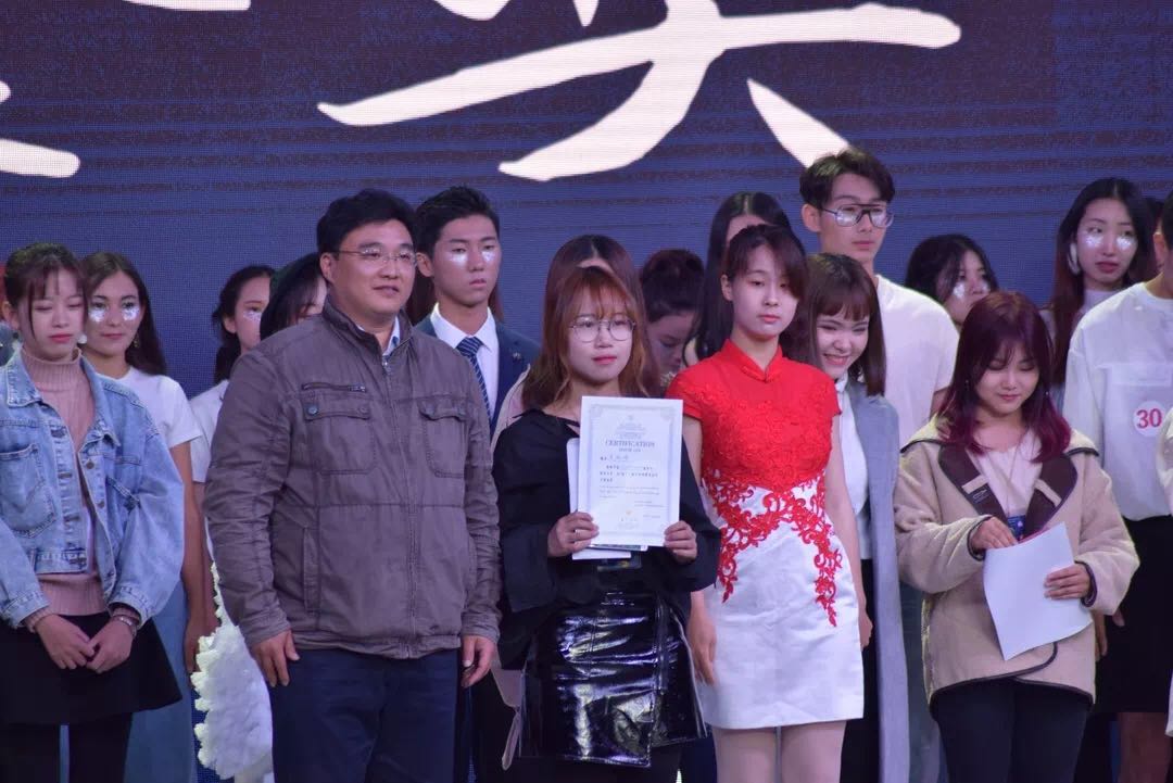 模特大赛颁奖典礼 何有节院长为金奖获得者胡锐彦颁奖