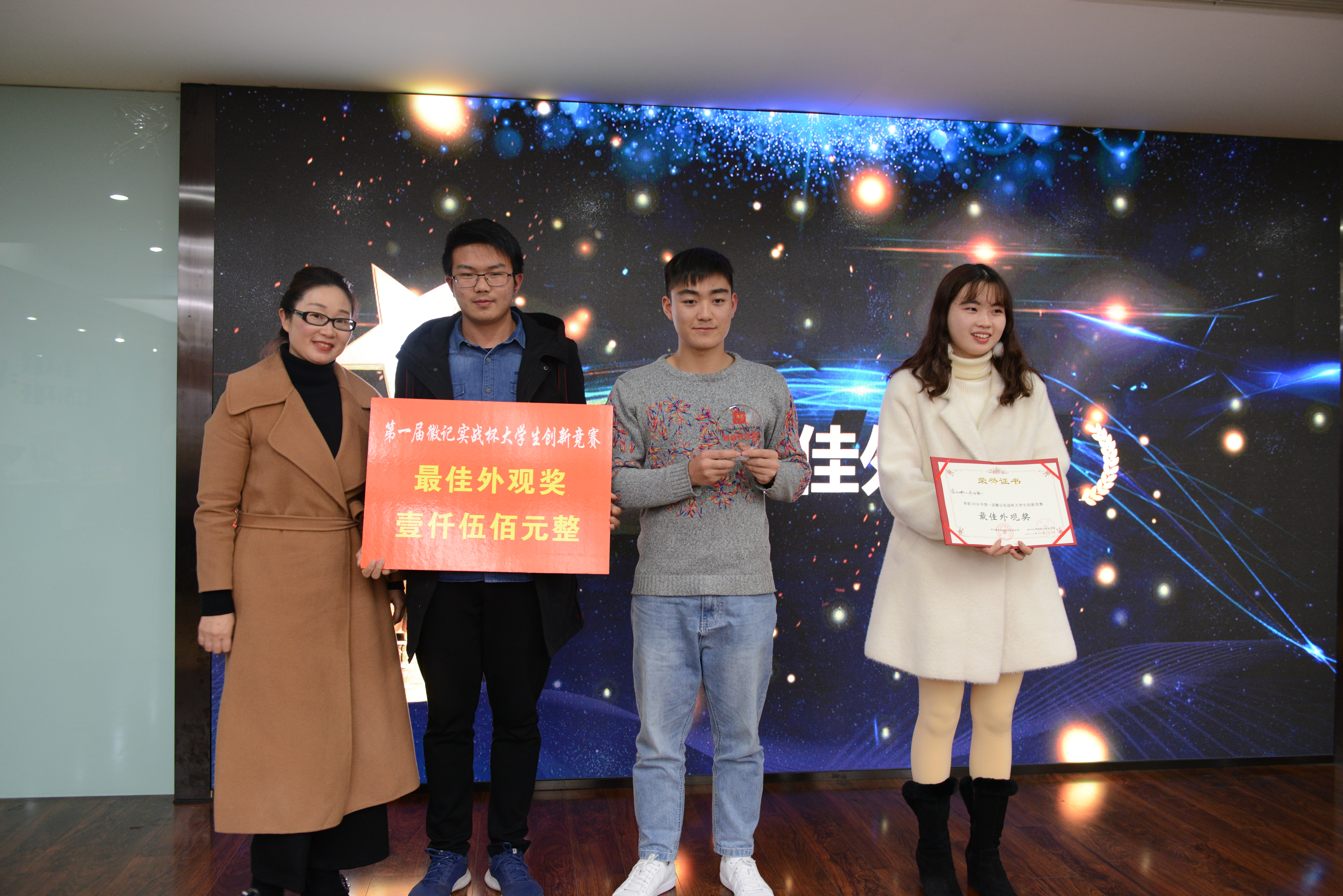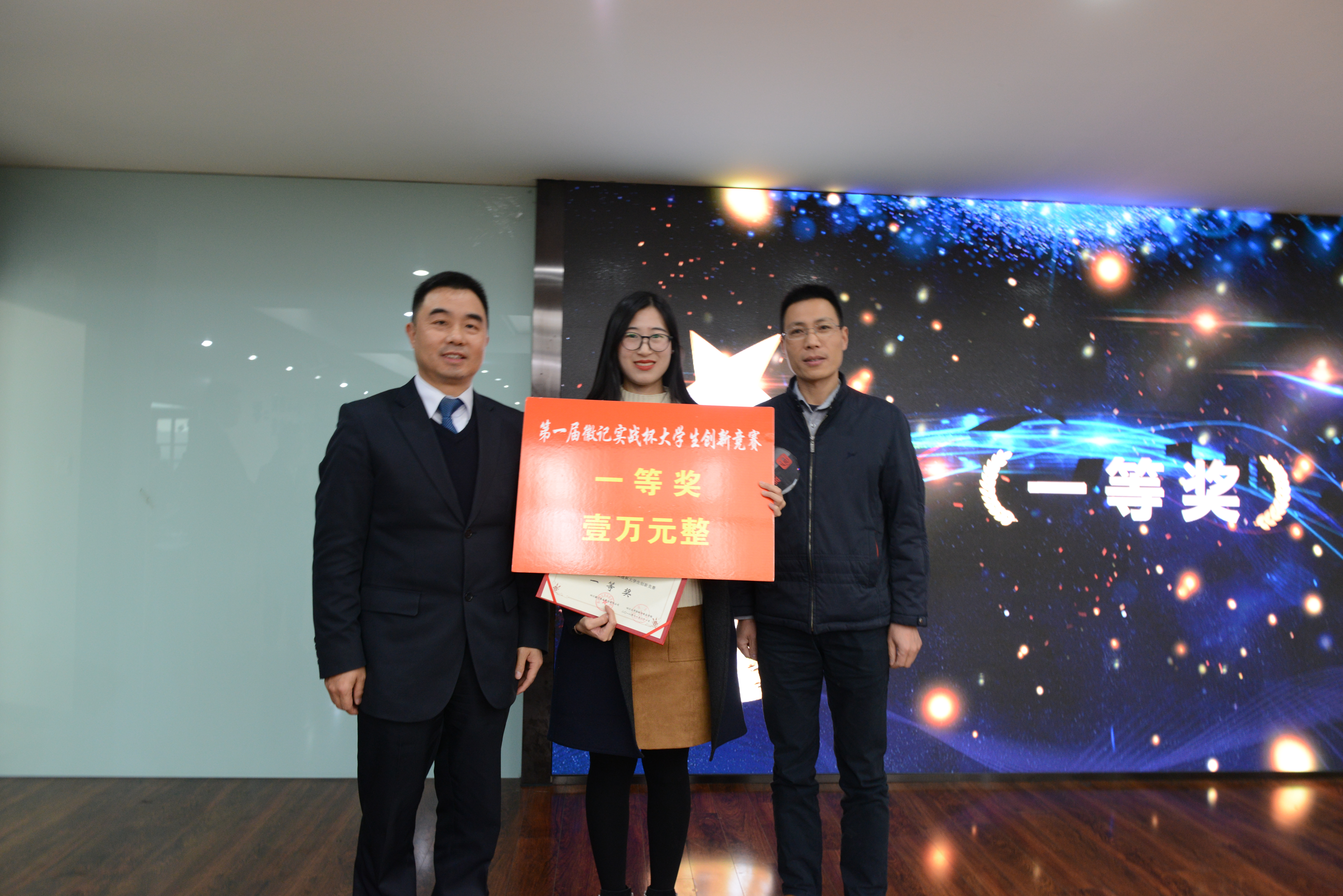 徽记股份有份有限公司董事长吕金刚先生和轻纺与食品学院冯国涛副书记先后为决赛致辞;在主持人介绍了入围决赛的队伍�比赛规则、评分细则以及奖项设置后,入围队伍进行了作品展示�经过激烈角逐,首届“徽记实战杯”大学生创新竞赛决赛结果顺利出炉�