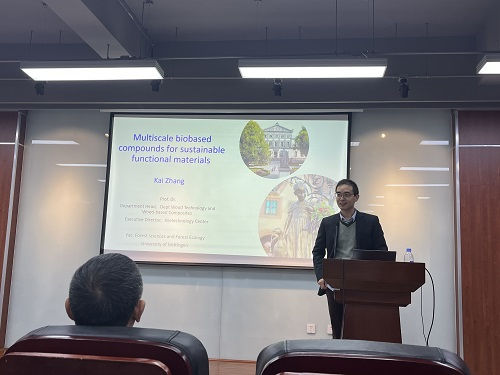 生物技术中心执行主任、木材技术与木基复合材料系主任张凯教授在皮革楼215报告厅为全院师生作了题为“可持续功能材料的多尺度生物基化合物”的学术报告。报告会由8bo足球比分