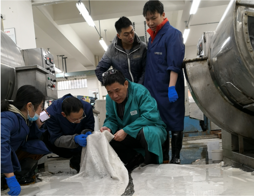 2015年岁末,因暴出大规模环境污染问题而被停业整顿的北方某制革园区经过整改后筹备重新启动,但是需要解决生产过程中面临的技术难题,确保能有效从源头上控制污染物的排放。经过相关部门的协调,在当地管理部门和第三方机构的监督下,刚获得国家自然科学技术发明奖的先生带着我们到当地企业对课题组多年来的研究成果开展产业化试验,为当地政府部门的决策提供参考。时值数九,天寒冷冽,滴水成冰,先生始终坚持在一线,严谨论证每一个生产阶段的组织和实施方案,认真检查每个工序的处理效果。彼时,车间灯光昏黄,但我好像从先生细致观察生产效果的眼里看到了能有效解决行业发展困境而散出的光芒。经过现场论证,先生提供的技术方案完全达到了相关部门制定的标准,当地制革园区得以重新运转;现如今,当地制革企业已经焕发出了新的生机,在我国制革行业占据了重要地位。前年,春寒料峭,作为“十三五”国家重点研发计划项目首席科学家,尽管年过五十了,先生再一次带着我们到企业对项目研究成果开展示范生产。后来,同行的高博士说,当14吨的原料皮顺利完成生产,先生问她是否很有成就感时,她想到了王小波写的在荒岛上迎接黎明,听见天地之间钟声响,十万支金喇叭齐鸣,那确实是心底的欢歌。那一刻,在我的脑海里,多年前先生那个在昏黄车间里打着手电筒细致检查工艺效果和生产情况的背影,异常闪亮,时刻提醒我什么才叫有用的科研,“大国工匠”应有的模样。