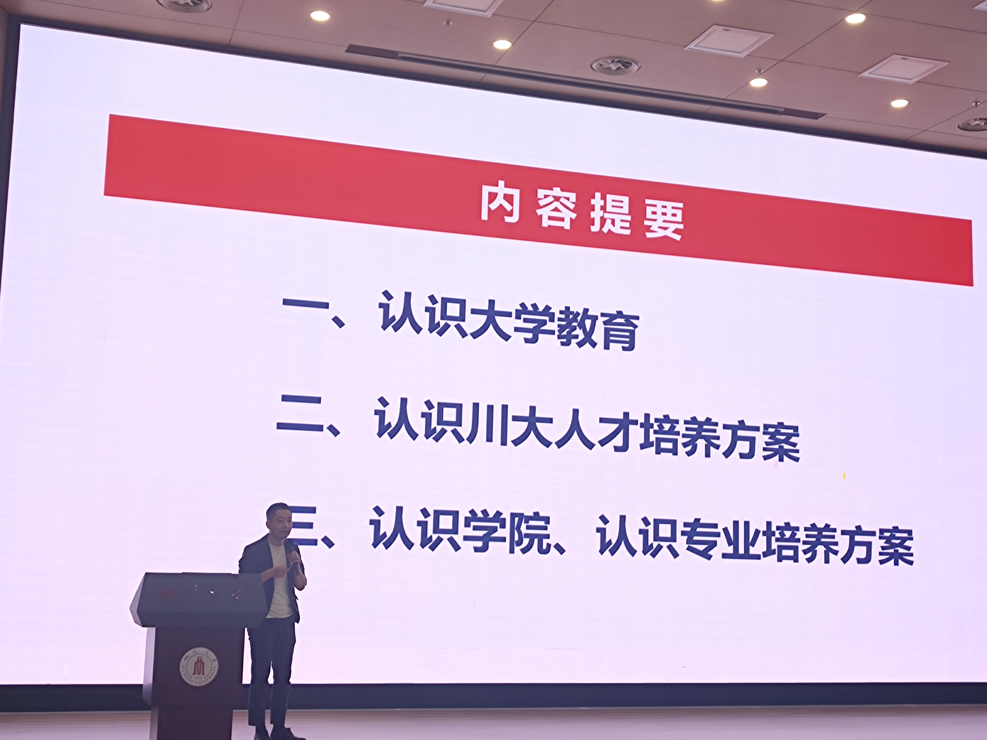 其次,教学副院长陈意教授以《打造一流本科教育、培养一流人才》为主题,从认识大学教育、认识川大人才培养方案、认识学院和专业培养方案三大方面全面�2023级同学详细地介绍了四川大学及轻工科学与工程学院人才培养及相关要求�