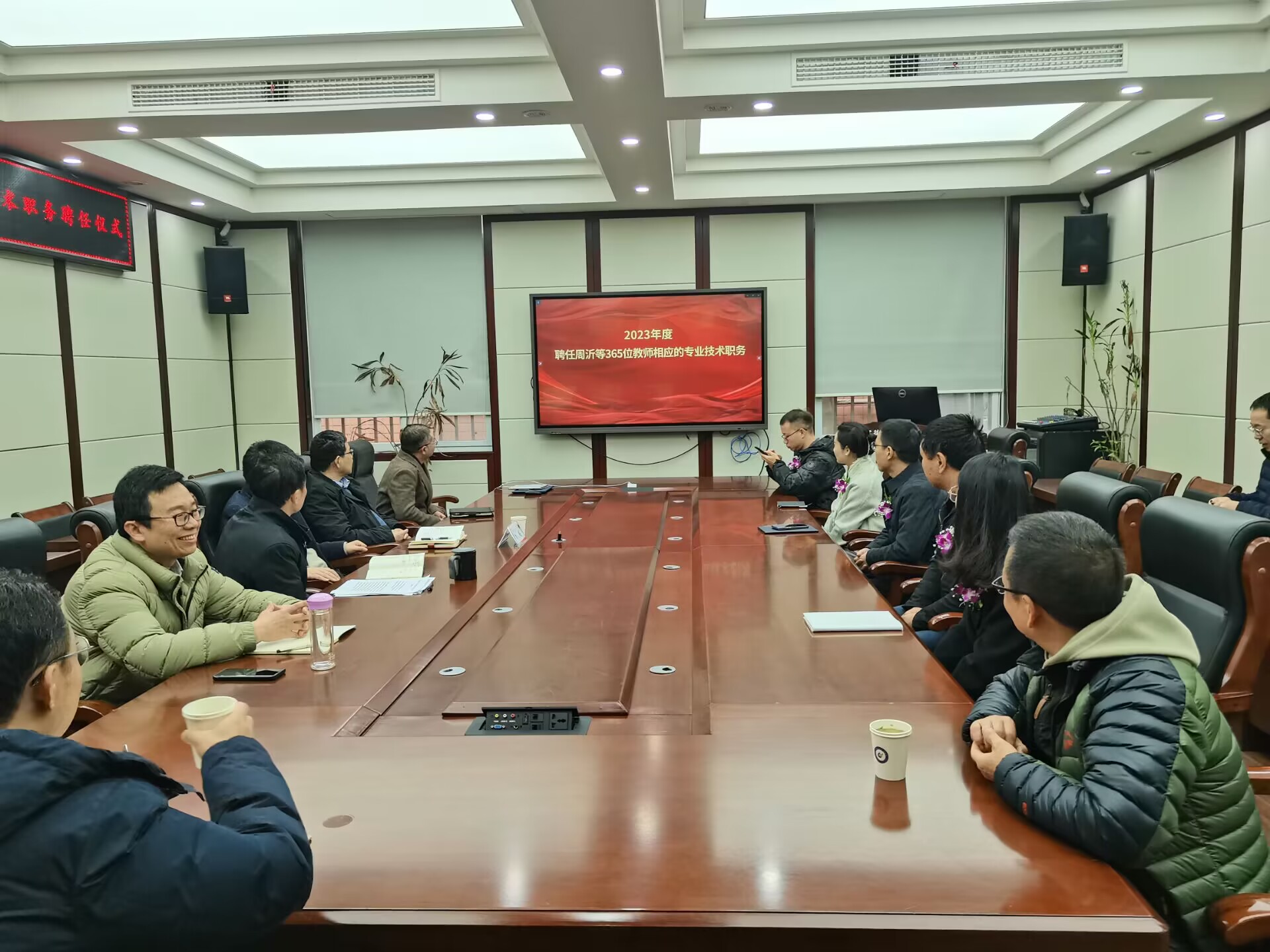 在纺工附楼205会议室举行2023年度新晋副高级专业技术职务聘任仪式。刘超副校长、8bo足球比分