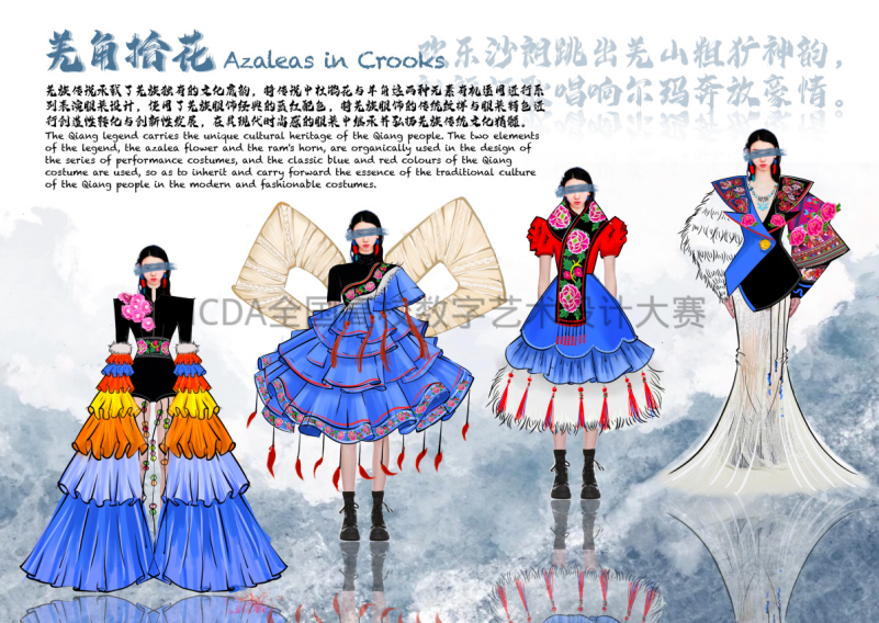 国家级一等奖作品《羌角拾花》(作者:赵若绵、翁新悦;指导老师:孟虎、时昱)