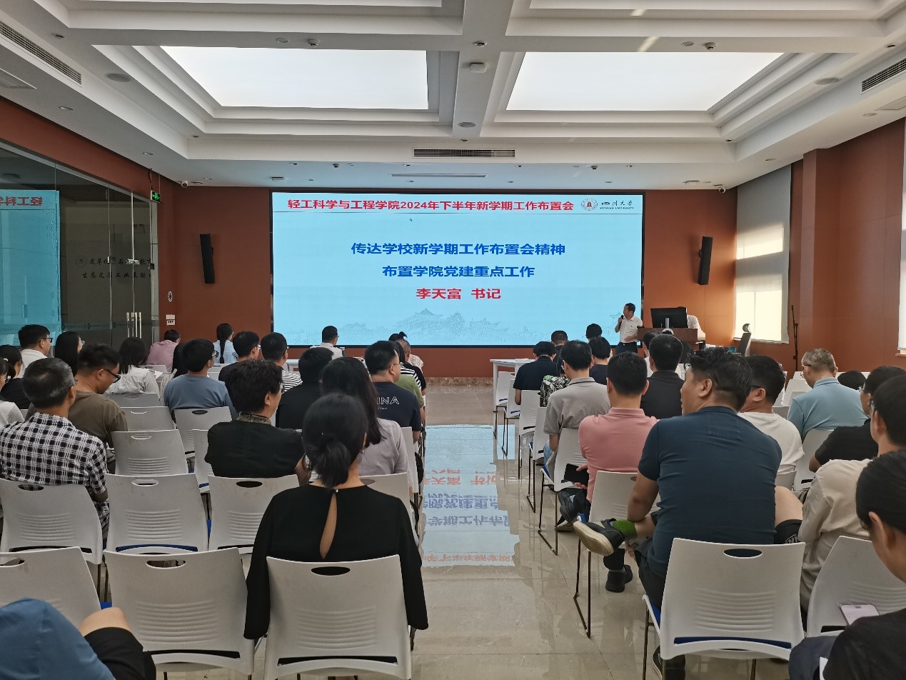 在皮革楼工业互联网中心召开全院教职工大会,传达学习学校2024年新学期工作布置会精神,并安排部署本学期工作。会议由院党委副书记兼纪委书记冯国涛主持。