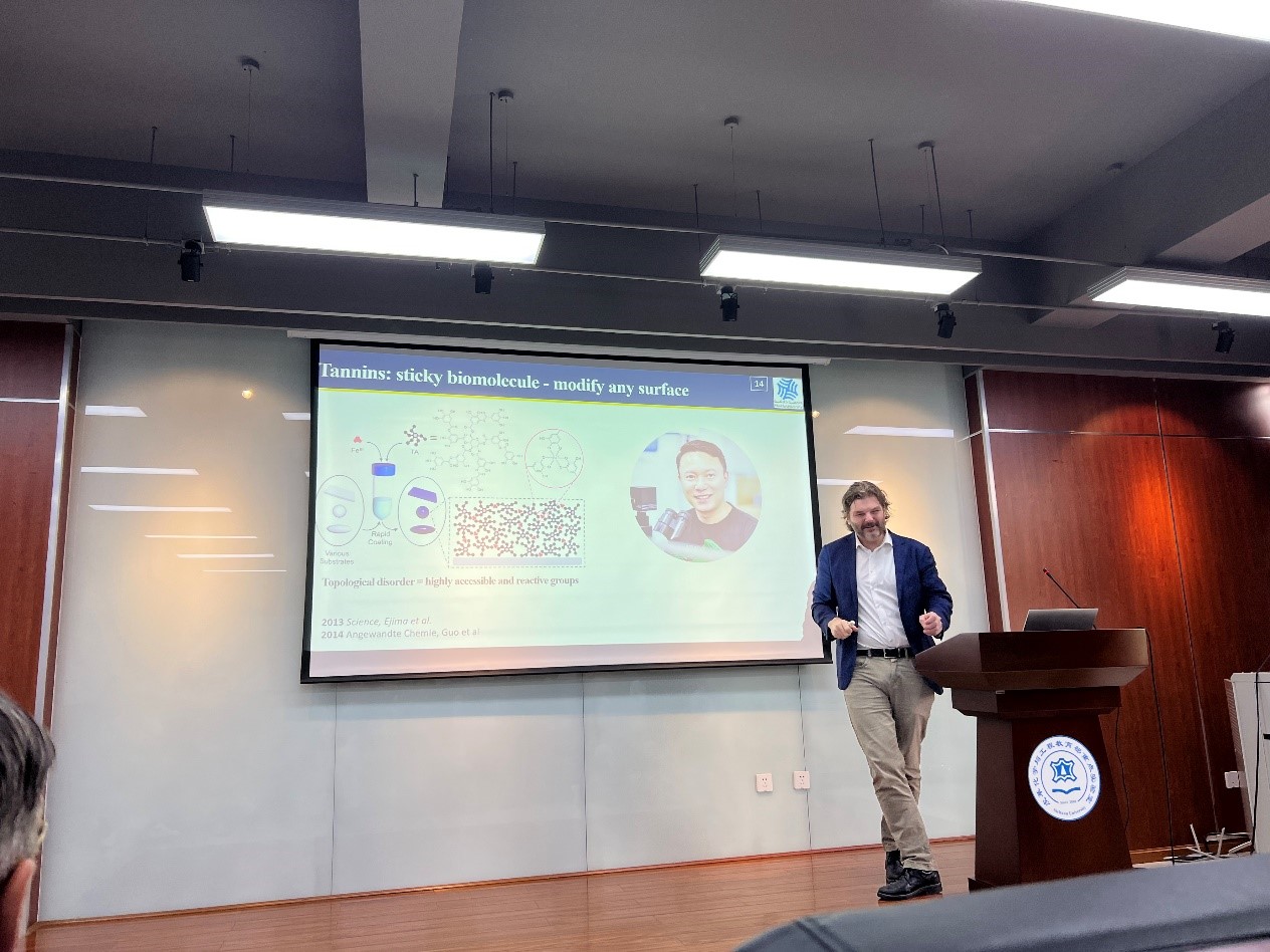 郭俊凌教授邀请,在皮革楼215学术报告厅做了精彩报告,深入探讨了生物质材料发展所面临的机遇、挑战和未来的研究方向。