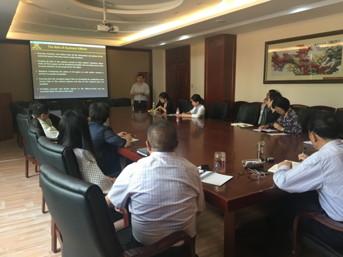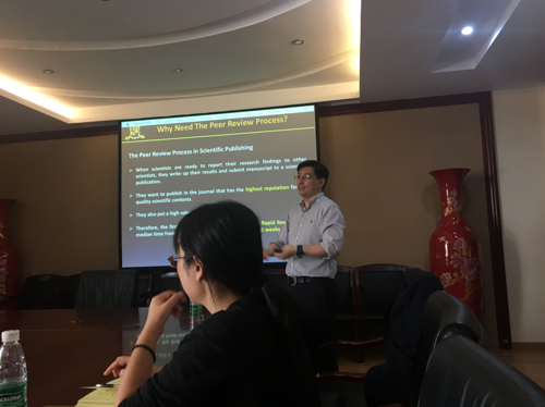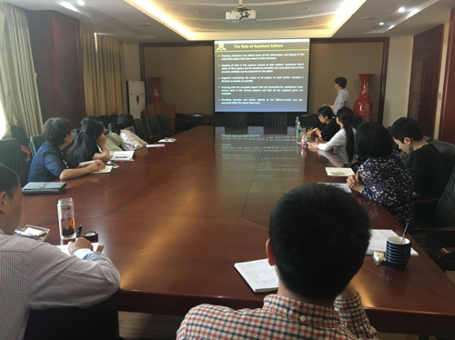 应四川大学8bo足球比分 和《皮革科学与工程》杂志社邀请,香港中文大学化学系魏涛教授(Prof. To Ngai)于2018年4月4日到8bo足球即时比分 进行学术交流,并就杂志社英文期刊创刊事宜与编辑部及相关老师座谈,做了一场题为“Managing a High Reputation Journal: Aperspective from A Scientific Researcher”的精彩报告。座谈会由生物质与皮革工程系系主任林炜教授主持,8bo足球比分 院长何有节教授介绍了魏涛教授的研究工作经历并致欢迎词。会上魏涛教授主要分享了他在担任ACS旗下期刊Macromolecules主编(吴奇教授)助理(Assistant Editor)工作两年期间,有关审稿过程管理、编辑部主要成员职责以及怎样提高期刊的学术声誉等方面的经验;并从一位研究学者的角度对如何创办一个高水平且有持续发展活力的英文学术期刊提出了自己的建议和看法。《皮革科学与工程》杂志社社长陈武勇教授、编辑部陈玲主任、陈慧副教授、王亚楠副教授等老师就英文期刊在创办工作及与国外出版公司合作中可能遇到的问题与魏教授进行了比较深入的讨论和交流,探讨了一些可操作性较强的应对措施。 魏涛:博士(PhD)、香港中文大学化学系教授。魏涛教授于1999年以一等荣誉毕业于香港中文大学化学系,之后师从吴奇院士攻读博士学位,于2003年获香港中文大学化学系化学博士学位;2003年-2005年在德国巴斯夫公司任职,2005年7-12月在美国明尼苏达大学做博士后研究;2006年1月起在香港中文大学任教,且在2006年1月-2008年1月期间担任高分子学科Macromolecules的副主编助理。2008年被聘为香港中文大学化学系助理教授,并于2012年和2017年分别晋升为副教授和教授。他的主要研究领域包括:高分子、胶体、软物质的设计和合成及其相互作用表征、纳米粒子合成与自组装、自组装理论与方法研究等。魏涛教授近年来在Angewandte Chemie、 Internationnal Edition、Macromole-cules、Soft Matter、Langmuir等国际核心学术期刊发表论文100余篇。