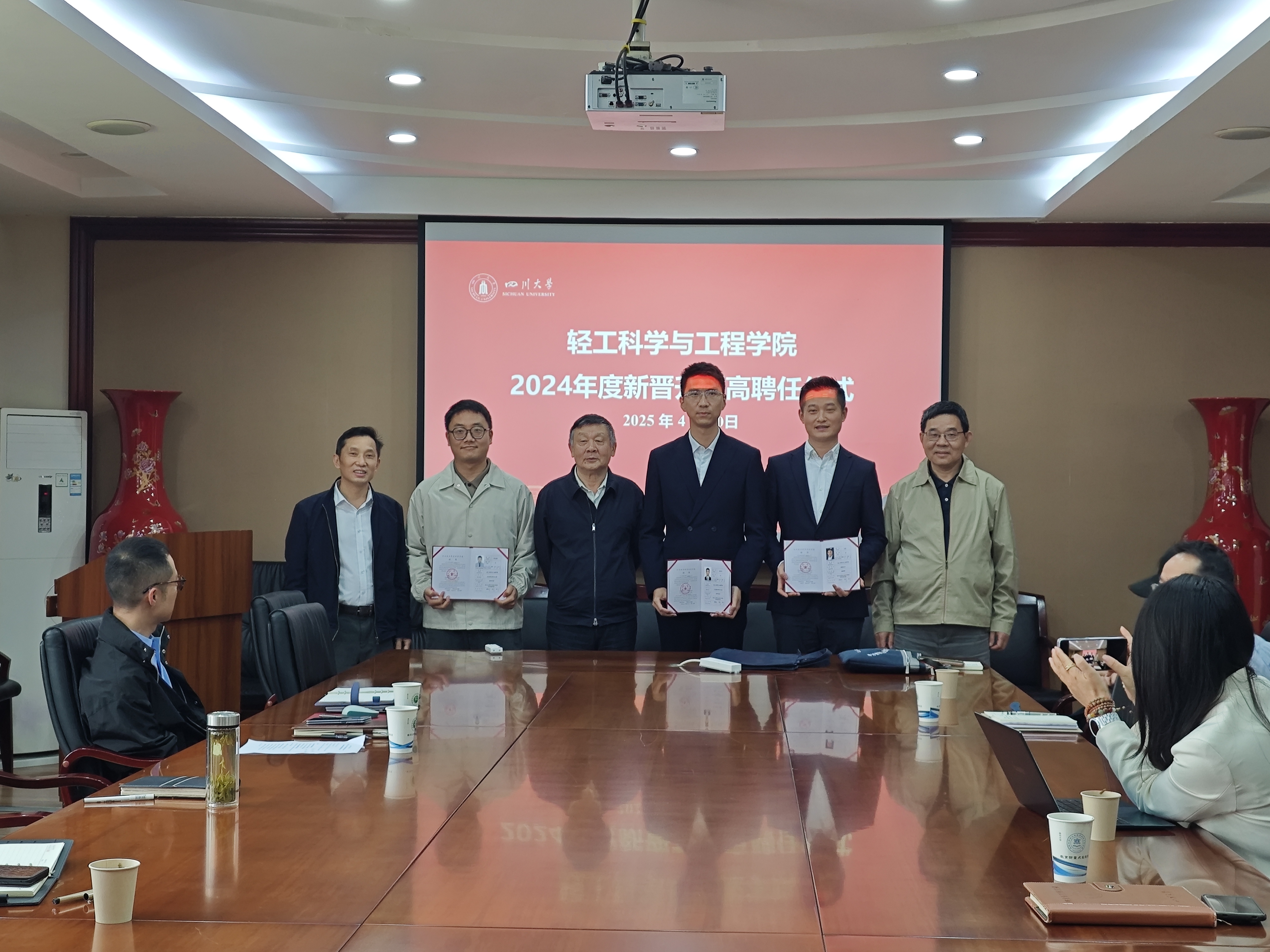 4�30日上午,轻工科学与工程学院在皮革�209会议室成功举办第四期“大川观澜”青年教师职业成长工作坊�2024年度新晋升副高聘任仪式。学院班子成员、教授委员会代表、部分青年教师参会。学院党委李天富书记主持会议�