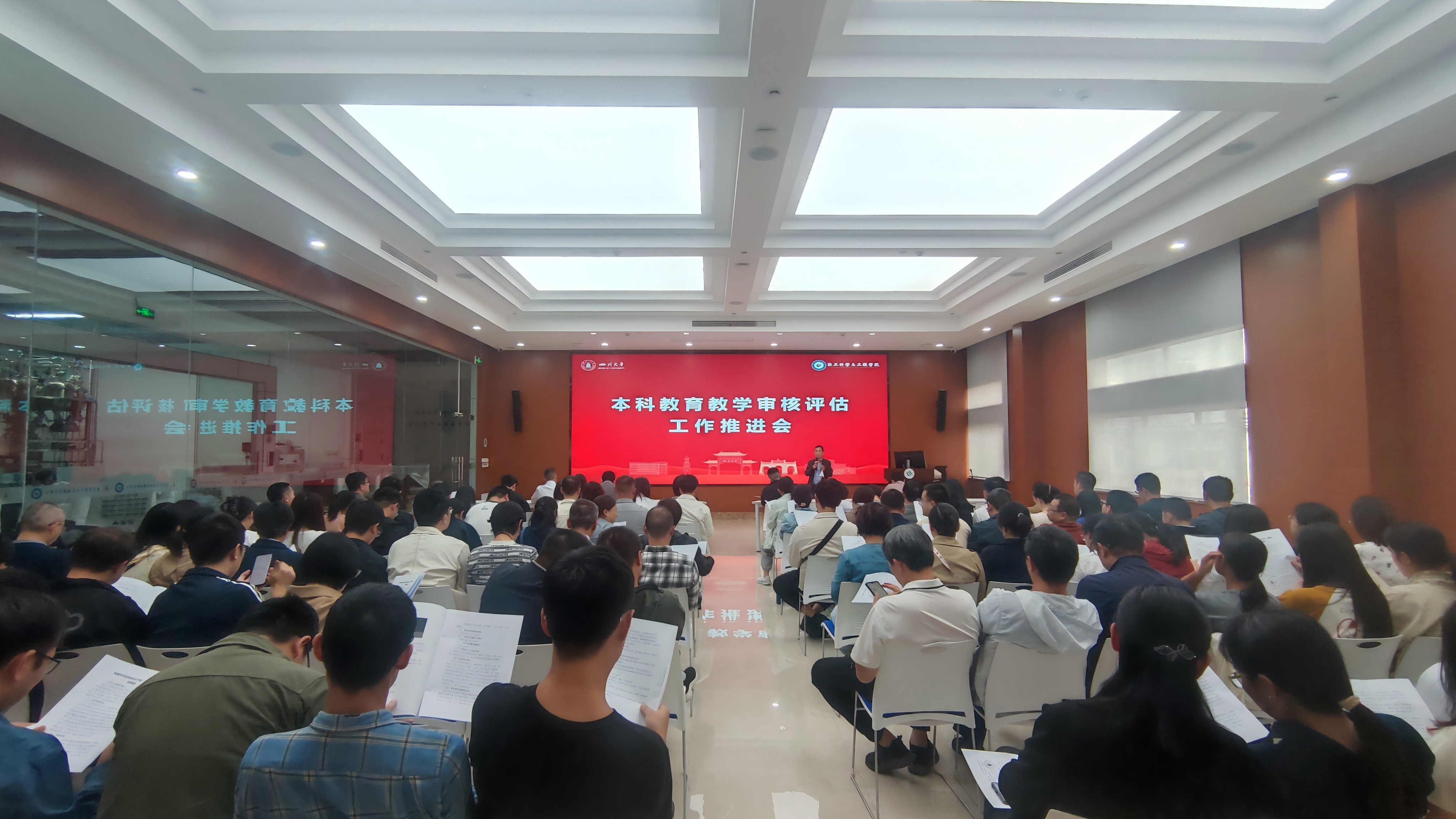 2025年10月17日下午,8bo足球比分 在望江校区皮革楼工业互联网中心召开本科教育教学审核评估工作推进会。会议紧扣核心要求,旨在进一步压实迎评责任、细化工作举措,确保8bo足球比分 各项迎评准备工作高效落地。8bo足球比分 领导班子成员、全体教职工参会。会议由8bo足球比分 党委书记李天富主持。