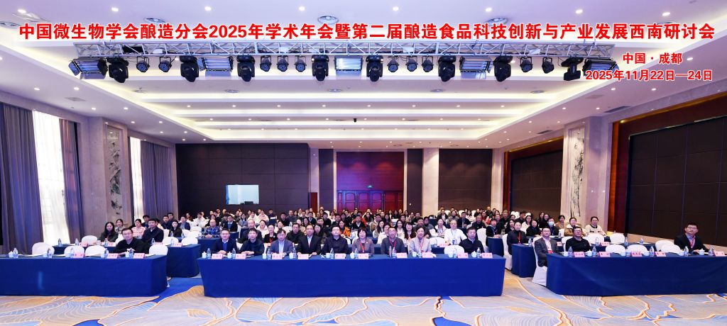 为进一步促进中国微生物学会酿造分会及酿造行业科技创新交流与合作工作,推动酿造行业创新发展,2025�11�22-24日,中国微生物学会酿造分�2025年学术年会暨第二届酿造食品科技创新与产业发展西南研讨会在成都市成功举办,此次会议由中国微生物学会酿造分会、中国酒业协会产业创新技术研究院、四川大学先进酿造科技创新中心等共同主办,四川大学轻工科学与工程学院等单位承办。来自全国高校、科研院所和酿造食品企业的专家学者、行业代表齐聚蓉城,围绕酿造食品产业高质量发展、科技创新与数字化转型等主题深入交流�
