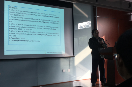 2017年12月4日上午9时,中国农业大学程永强教授来8bo足球即时比分 开展“魔芋葡甘露聚糖与面团各组分相互作用及对产品功能影响”学术报告,食品工程系何强教授、吕远平教授、迟原龙副教授、赵志峰副教授、卜迁副教授、钟凯博士、任尧博士等多名教师以及100余名研究生和本科同学参加。