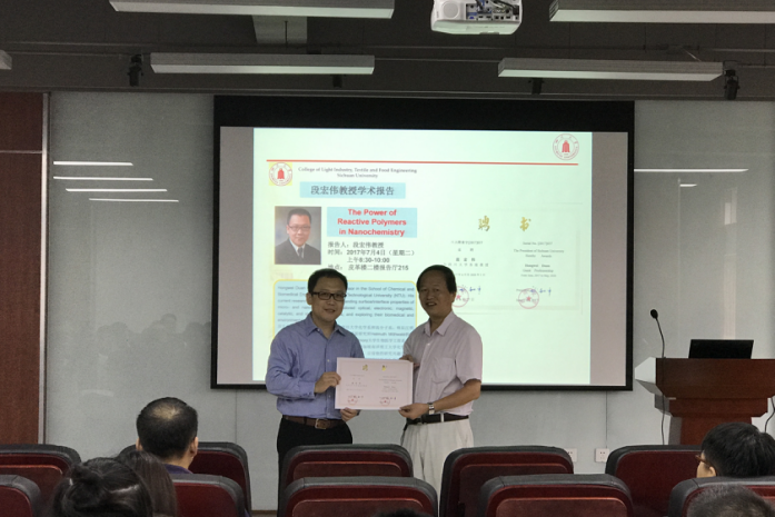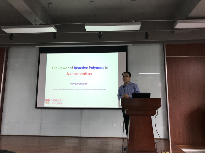 林炜教授主持。段宏伟副教授在会上作了一场题为“The Power of Reactive Polymers in Nanochemistry”的学术报告,介绍了其主要的研究方向和最新的研究成果。该会不仅有我校大量教师、研究生、本科生参加,还吸引了部分校外的学者们前来交流讨论。最后,大家带着思考和收获,以热烈掌声感谢段宏伟副教授的精彩学术报告,报告会在轻松活跃的气氛中落下帷幕。段宏伟教授本科和硕士分别就读于复旦大学化学系和高分子系,师从江明院士。他于2005年在马克思普朗克胶体界面研究所Helmuth Möhwald教授研究组完成博士论文,之后在佐治亚理工和Emory大学生物医学工程系和聂书明教授从事博士后研究。他在2009年加入新加坡南洋理工大学化学与生物医学工程8bo足球比分