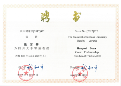 ,并于2015年晋升终身副教授。2017年被聘为四川大学客座教授。目前他的研究内容主要集中在通过理解调控微纳结构的表面-界面性质实现相应材料在生物医学和环境工程领域的应用。