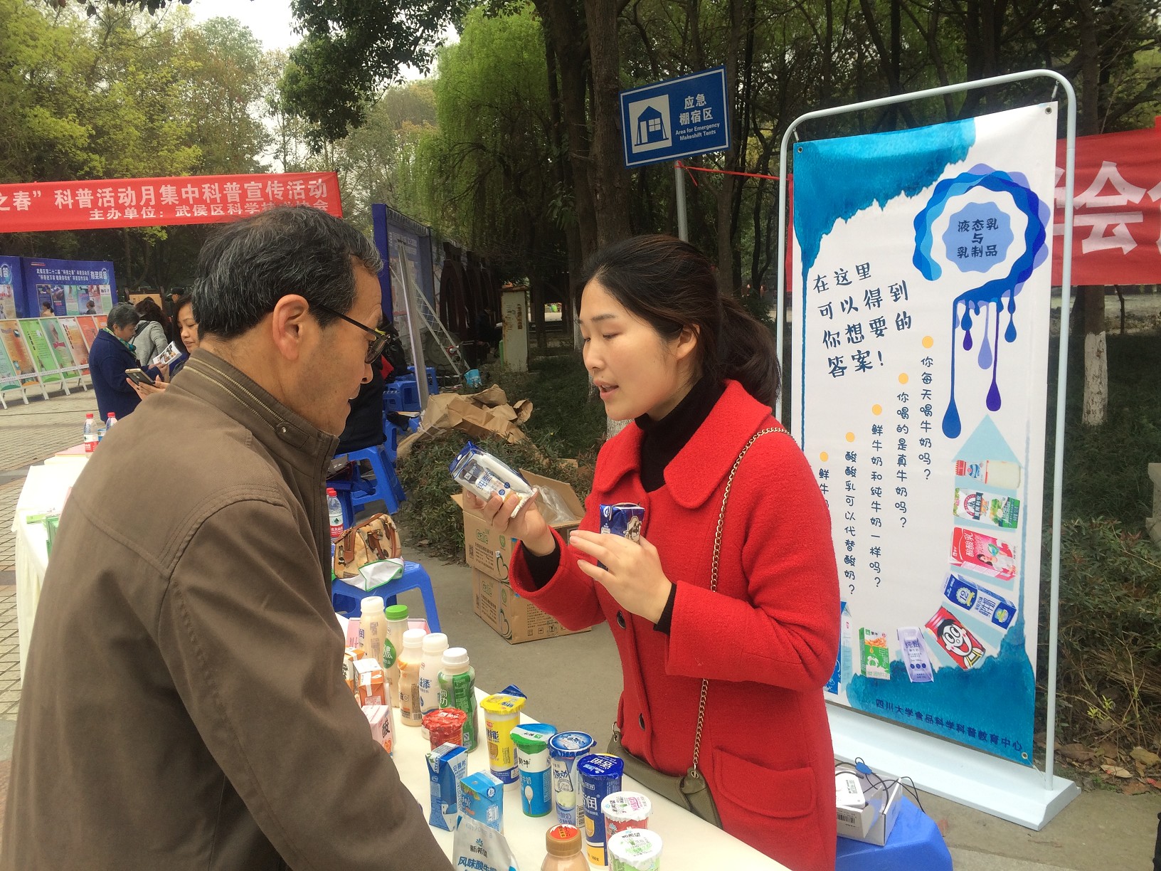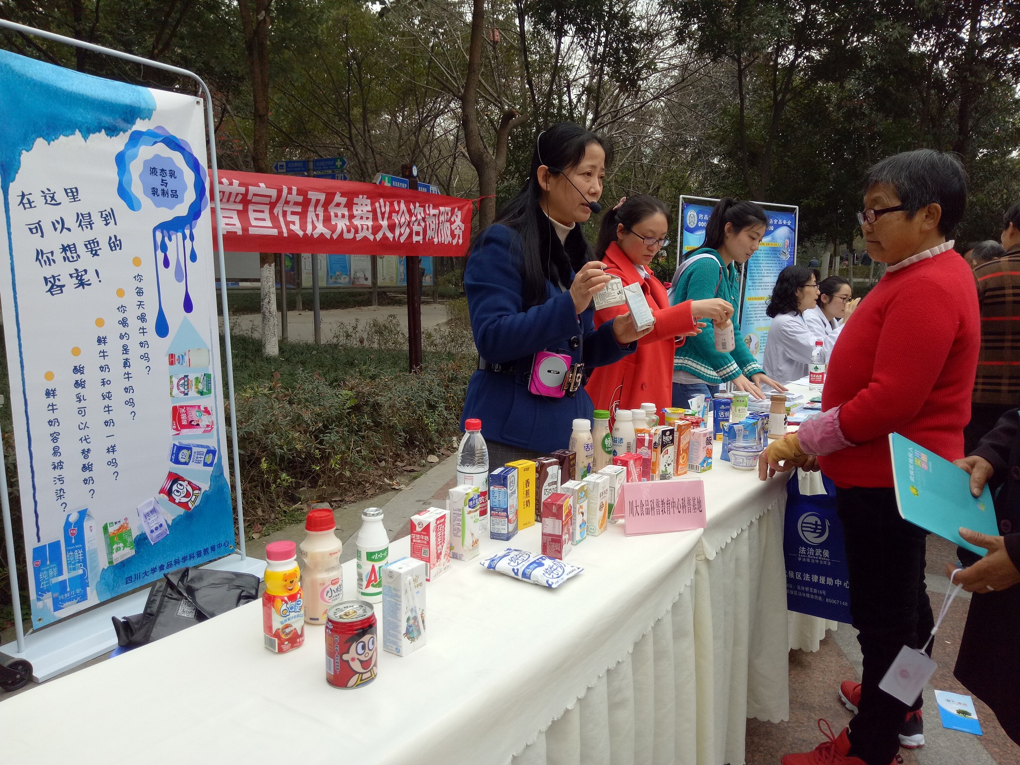2017年3月29日,武侯区第二十二届“科技之春”科普活动月集中科普宣传活动在簇桥街道簇锦公园进行,8bo足球即时比分 食品科学科普教育中心吕远平教授和何贵萍老师携带市面上各类液态乳(酸奶,纯牛奶,各种乳饮料等)参加了此次活动,为广大市民带来了一场关于“液态乳与乳制品选择”的知识盛宴。活动过程中,提醒市民可通过乳制品包装盒(袋)上的标签来区分乳制品种类和认识乳制品的营养成分等,打破了有些人认为某种乳制品好或不好“一刀切”的观念,让大家对乳制品的选择有了比较理性和客观的认识。