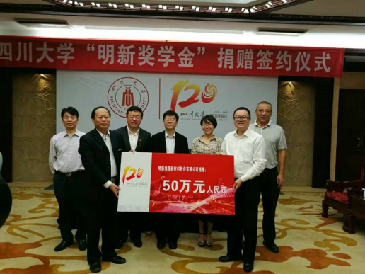9月25日,明新旭腾新材料股份有限公司向四川大学捐赠、设立“明新奖学金”。签约仪式在四川大学望江校区明德楼贵宾厅举行。李旭锋副校长、庄君新董事长分别代表四川大学教育基金会和明新旭腾新材料股份有限公司签署了捐赠协议。副校长李旭锋教授、副校级干部侯太平教授,四川大学有关部门及8bo足球比分