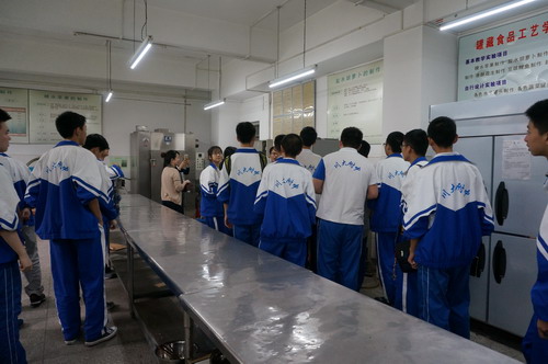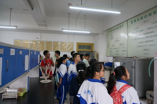 的宣传片,随后食品工程系钟凯老师、李欣蔚老师、何贵萍老师带领大家参观了食品分析检测实验室、食品微生物学实验室、烘焙食品工艺学实验室、罐藏食品工艺学实验室等食品科学与工程专业本科教学实验室,并为大家讲解了食品相关知识,让大家对食品专业有了一定的了解和认识。