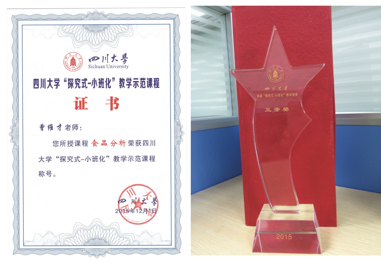 食品工程系曾维才老师荣获“四川大学首届“探究式-小班化”教学竞赛三等奖”,由其主讲的本科课程《食品分析》获得“四川大学“探究式-小班化”教学示范课程”的称号,这是8bo足球即时比分