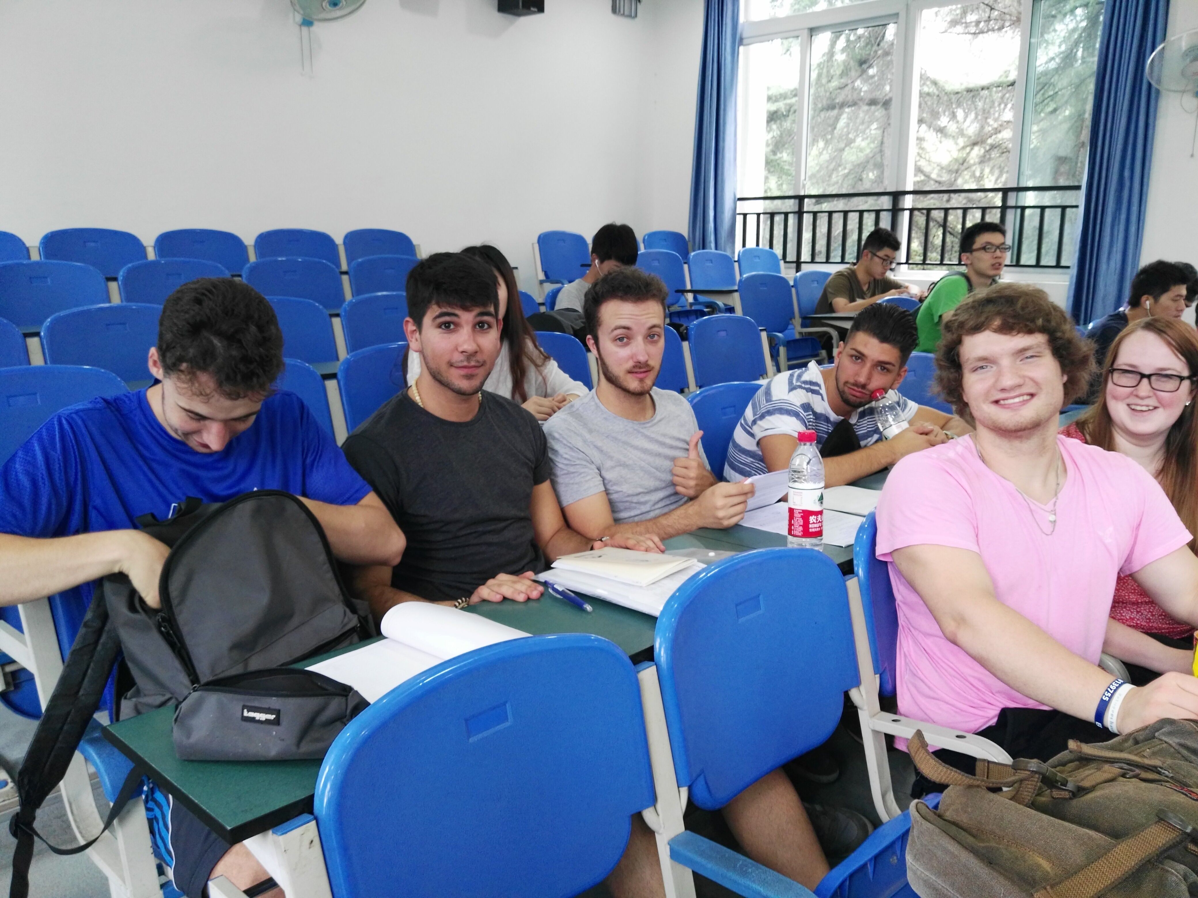 早上6:50,西班牙同学与志愿者们就集合从望江前往江安教室,与其他同学一同踏入教室。在课堂上,西班牙的同学们不仅与来自其他国家的外籍教师进行学习交流,并通过课堂讨论的方式,与我校其他同学相互沟通,共同进步。课下,认真阅读学习资料,积极完成课后作业,体现出他们严谨认真的学习态度。