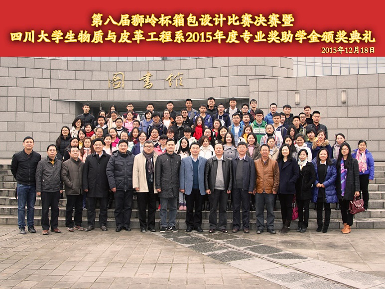 2015年12月18日,第八届狮岭杯箱包设计比赛决赛暨中国皮革协会奖学金、华南杰出奖助学金、狮岭杯箱包设计比赛奖学金、斯塔尔奖学金、广州绿北洋奖学金、德国司马公司创新奖学金、欣驰—博奥奖学金、吴建军助学金颁奖典礼在江安校区综C407隆重举行。受四川大学生物质与皮革工程系的邀请,中国皮革工业协会陈占光副秘书长、广州花都狮岭镇人民政府胡才波副镇长、广州狮岭皮革皮具产业研究中心周南主任、广州狮岭皮革皮具产业研究中心梁丽君女士、才聚文化集团熊金红总裁、德国司马化学(香港)有限公司皮革部中国区张建华经理、斯塔尔广州技术服务中心经理李艳女士、斯塔尔广州技术服务中心实验室主管甑巧媚女士、广州欣驰、博奥皮革有限公司总经理吴建军先生参加了本次活动。出席本次颁奖典礼的8bo足球比分