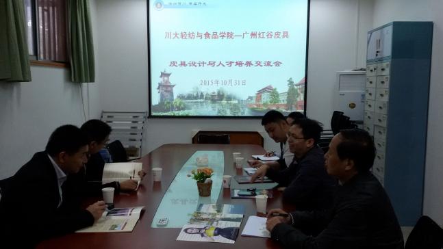 ,与革制品教研室徐波主任、曾琦老师、周晋博士,肖凯副院长、何有节等,就皮具设计研发合作、实习基地建设、人才培养、招聘学生等进行交流。何有节院长和余敏华总经理分别介绍了校企双方的情况。徐波主任介绍了四川大学皮革工程系轻化工程专业(革制品设计方向)本科生培养和革制品工程与材料博士点的情况;曾琦老师和周晋博士分别了8bo足球即时比分