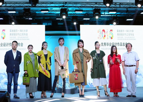 客座教授”聘书。发布会分为三个篇章,分别以“溯本”、“逐今”、“后”为主题,由四川大学时装模特协会的24位在校学生将服装设计与工程专业2015届本科毕业生设计的37个系列、150套服装作品演绎给社会各界。这些作品传递出四川大学服装设计与工程专业毕业生们对创造与创新的诠释、对市场需求的贴切,得到了在场专家学者、业内人士的高度赞许。雷迪波尔服饰股份有限公司副总裁卢山表示雷迪波尔企业将继续加大“雷迪波尔国家级工业设计中心四川大学分心”产品研发方面的投入,加强学生综合实践能力的培养。卢山坚信:通过雷迪波尔与四川大学的不懈努力,将会极大地提升四川服装的研发设计能力,为四川服装培养出更多理论与实践相结合的高素质服装专业人才。