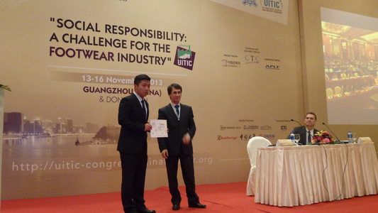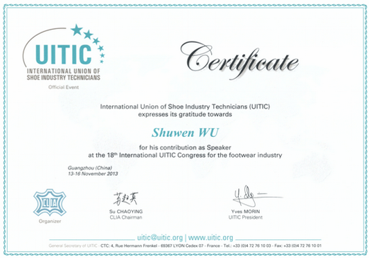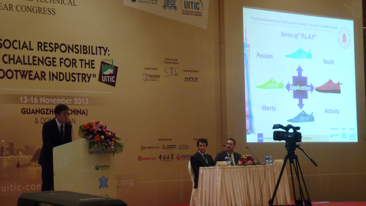 革制品方向杨璐铭副教授及2012级研究生郝芙蓉和2013级研究生伍舒闻参加了本次会议。伍舒闻同学在大会上做了题为“The Applied Research on User Experience Design Concept in Sneakers Design”(用户体验式设计理念在运动鞋设计中的应用研究)的报告,报告内容获得了国内外行业专家的一致赞誉。 背景:国际鞋业技术大会(International Technical Footwear Congress)由国际鞋业技师联合会(International Union of Shoe Industry Technicians,简称UITIC)授权,中国皮革协会主办。国际鞋业技师联合会(UITIC)成立于1972年,是一个致力于推动全球鞋业技术发展的国际组织。它的会员来自于世界27个国家和地区的协会、研究机构、私人公司及鞋业专家。国际鞋业技术大会是国际鞋业技师联合会的官方活动,是世界鞋业技术领域的峰会,来自国内外300余位鞋业界的管理者、鞋业技术工作者参加了会议,其中近百位来自海外。大会原则上每两年举办一届。多年来,该大会为推动世界鞋业技术进步和管理创新,推动制鞋行业整体发展做出了卓有成效的努力。 (YLM)
