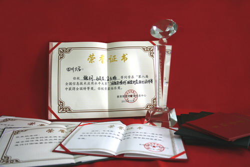 为贯彻落实《国家中长期教育改革和发展规划纲要(2010-2020年)》和《国家中长期人才发展规划纲要(2010-2020年)》的有关精神,推动各有关院校信息技术相关专业教学体系的改革,引导学校积极开展应用型人才的培养,提高学生的解决问题能力和自主学习能力,培养学生的创新创业能力,教育部教育管理信息中心在全国范围内举办了“第八届全国信息技术应用水平大赛”— “国教华腾杯服装创意设计团体赛”。2013年12月9日,我校2010级服装设计与工程专业魏柯、毛成吉、李亚楠、郭双劼为一组的四川大学参赛代表队在北京航空航天大学举行的全国总决赛中,经过实际操作和现场答辩脱颖而出,获得全国唯一特等奖,四川大学获得“伯乐奖”。
