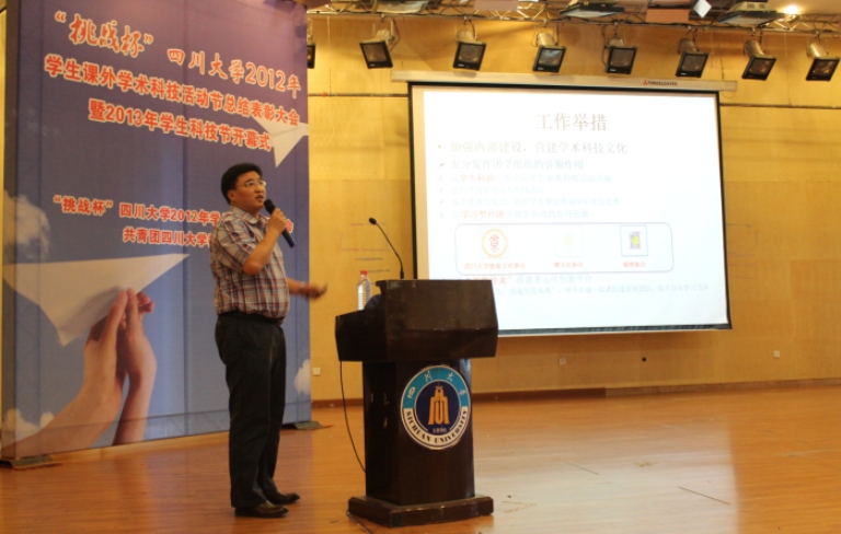 5月10日14:30,“挑战杯”四川大学2012年学生课外学术科技活动节总结表彰大会暨2013年学生科技节开幕式在望江校区文华活动中心二楼音乐厅举行。校长谢和平院士,常务副校长李光宪教授,党委副书记李向成教授等领导出席了本次会议。8bo足球比分