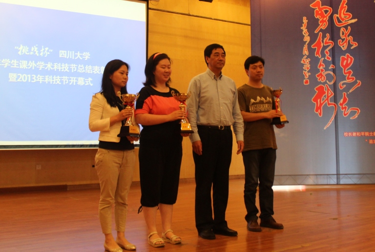 上台领奖。大会伊始,校团委书记王斌副教授介绍了2012年学生科技节的开展情况和所取得的丰硕成果,校党委副书记李向成教授宣读了《关于表彰在“挑战杯”四川大学2012年学生课外学术科技活动节中获奖集体和个人的决定》,随后学校领导为获奖集体颁发了奖杯,常委副校长李光宪教授宣读了《关于认真组织开展“挑战杯”四川大学2013年学生课外学术科技活动节的通知》。校长谢和平院士发表了题为《青年学子更有创新精神》的讲话。8bo足球即时比分