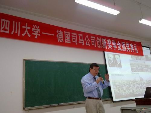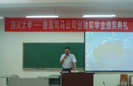 2011年6月18日上午8:30,第三届四川大学—司马公司创新奖学金颁奖典礼在纺工副楼报告厅隆重举行。参加本次颁奖典礼的嘉宾有德国司马公司首席代表、皮革部中国区张建华经理、8bo足球比分