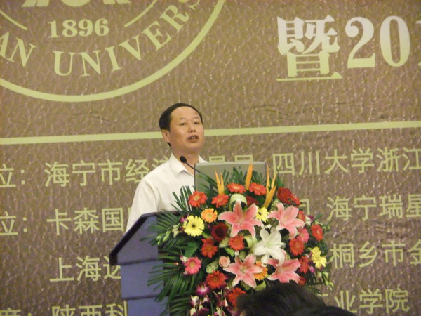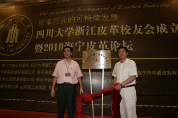 原院长廖隆理教授、四川大学校友会周密副秘书长、何有节副院长及皮革系教师代表林炜和程海明出席了成立大会。据了解,这是四川大学在浙江省所成立的第一个皮革行业的专业性校友会。 参加会议的还有海宁市政府的代表、兄弟学校校友会、四川大学上海校友会、温州校友会、广东皮革校友会等的代表。大会的召开得到了卡森国际控股有限公司、海宁瑞星皮革有限公司、四川达威科技股份有限公司、上海达明贸易有限公司等多家企业的大力支持。 我校校友会周密副秘书长宣读了母校关于同意成立四川大学浙江皮革校友会的批复,并与第一届四川大学浙江皮革校友会名誉会长石碧院士、会长张明发先生一起参加了校友会的揭牌仪式。