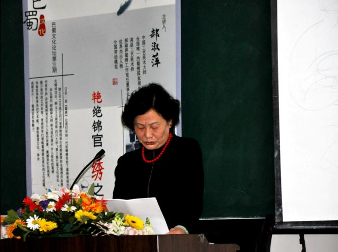 老师以及诸多社会人士也慕名莅临了此次论坛。 郝大师为本次论坛做了很高学术水平的演讲,她从蜀绣的起源开始,娓娓讲述了蜀绣的发展和历史变迁,尤其历数了解放后蜀绣在党和国家的关怀下从频临灭绝到蓬勃发展的各个历史性阶段;郝大师也痛心的谈及了文革期间蜀绣遭受的毁灭性破坏。在郝大师历时两个多小时的演讲中,我们更感受到了她对蜀绣的不懈追求和希望蜀绣能更好传承、发展的殷切期望。郝淑萍大师13岁开始学艺,从事蜀绣工作50年,她手上的针线见证了蜀绣的兴衰与变迁。在蜀绣被列为“非物质文化遗产”受到各方关注的今天,年过花甲的郝淑萍大师对蜀绣的传承和发展充满了信心:“国家重视,公众认同,市场开放,对我们这些从艺人来讲,传承老手艺千载难逢的机会到了”。此行郝大师不计报酬到学校演讲不但为了传播、宣传蜀绣,她更希望吸引学校中高学历、高素质人才加入蜀绣的队伍,使蜀绣这一古老技艺在新的环境下能更高更好的传承和发展,她的渴望和召唤令同学们感动。 芊芊手执绣花针,带着五彩丝线于软缎丝绡上翩翩起舞,蜻蜓点水般轻盈的刺绣,好似优雅的芭蕾。这一特殊的“芭蕾”,郝淑萍已经跳了整整50年。她的辉煌艺术成就引来阵阵惊讶和赞叹!演讲中郝大师展示了她和她的学生们创作的一幅幅美轮美奂的、代表蜀绣纹样和针法特色的作品:《芙蓉鲤鱼图》、《九寨沟大熊猫图》、《瑞照丰年》、《卓文君》、《峨眉杜鹃》、《昭君出塞》、《仕女打马球》…无论是缤纷的单面绣还是神奇的双面绣和奇异的异形异色绣,幅幅堪称神奇,无不令师生们叹为观止。 郝大师还针对同学们的提问对最代表蜀绣特色的二三针、全三针、锦纹针等针法进行了详尽的讲解。郝大师的演讲深深吸引着在座的每一位师生,她的演讲不时引起热烈的掌声和阵阵的惊叹,整个讲座座无虚席。不少同学认真记录着笔记,演讲结束后同学们还不愿离去,争相与郝大师交流讨论。一个同学感叹“早就该举行这样的讲座了”。此次演讲产生的热烈反响必将更好的促进我校尤其是轻纺食品8bo足球比分