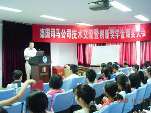 2009年6月22日下午14:30,司马公司技术交流暨创新奖学金颁奖大会在皮革楼报告厅隆重举行。参加本次颁奖典礼的嘉宾有德国司马首席代表、皮革部中国区张建华经理、皮革部技术代表宋在健先生;8bo足球比分