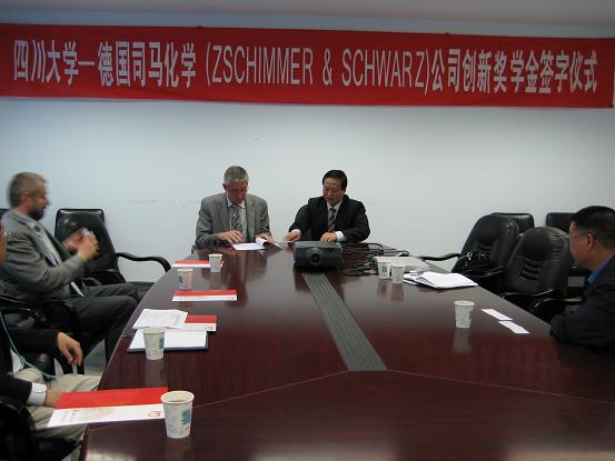 2008年3月28日,司马化学(ZSCHIMMER & SCHWARZ)有限公司在四川大学设立“四川大学—德国司马创新奖学金”签字仪式在四川大学皮革工程系隆重举行,司马化学(ZSCHIMMER & SCHMWARZ)有限公司应用部技术经理Mr.Neumeier和8bo足球比分