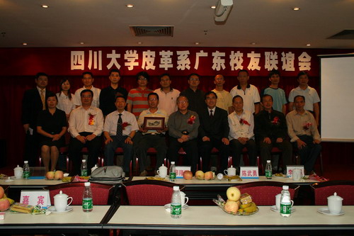 陈武勇、教师代表廖隆理和刘洪渧等专程前往祝贺。 校友会成立庆典由91级校友惠昌化工有限公司总经理倪建荣主持,李志强书记介绍学校母校的现状及发展前景,并代表学校对校友们的成立表示祝贺;陈武勇院长介绍了皮革系和重点实验室教学、科研和人才培养的情况,廖老师对校友们欢聚一堂即兴抒发感情。随后57级校友白坚、82级校友徐新釒监、99级校友周南分别代表不同时期的校友们对校友会的成立表示祝贺,并表达对母校的感激之情和对母校所取得辉煌成就的欢欣,同时对校友会“联络感情、交流信息、互相帮助、展示自我、共谋发展”寄予厚望。 随后校友们通过了以84级校友周扬春为会长,91级校友倪建荣为常务会长的四川大学皮革系广东首届校友会组成名单。 会后全体校友合影留念,参加了校友会成立午宴,新老校友共同举杯,祝愿母校明天更美好,祝愿校友们事业发达!